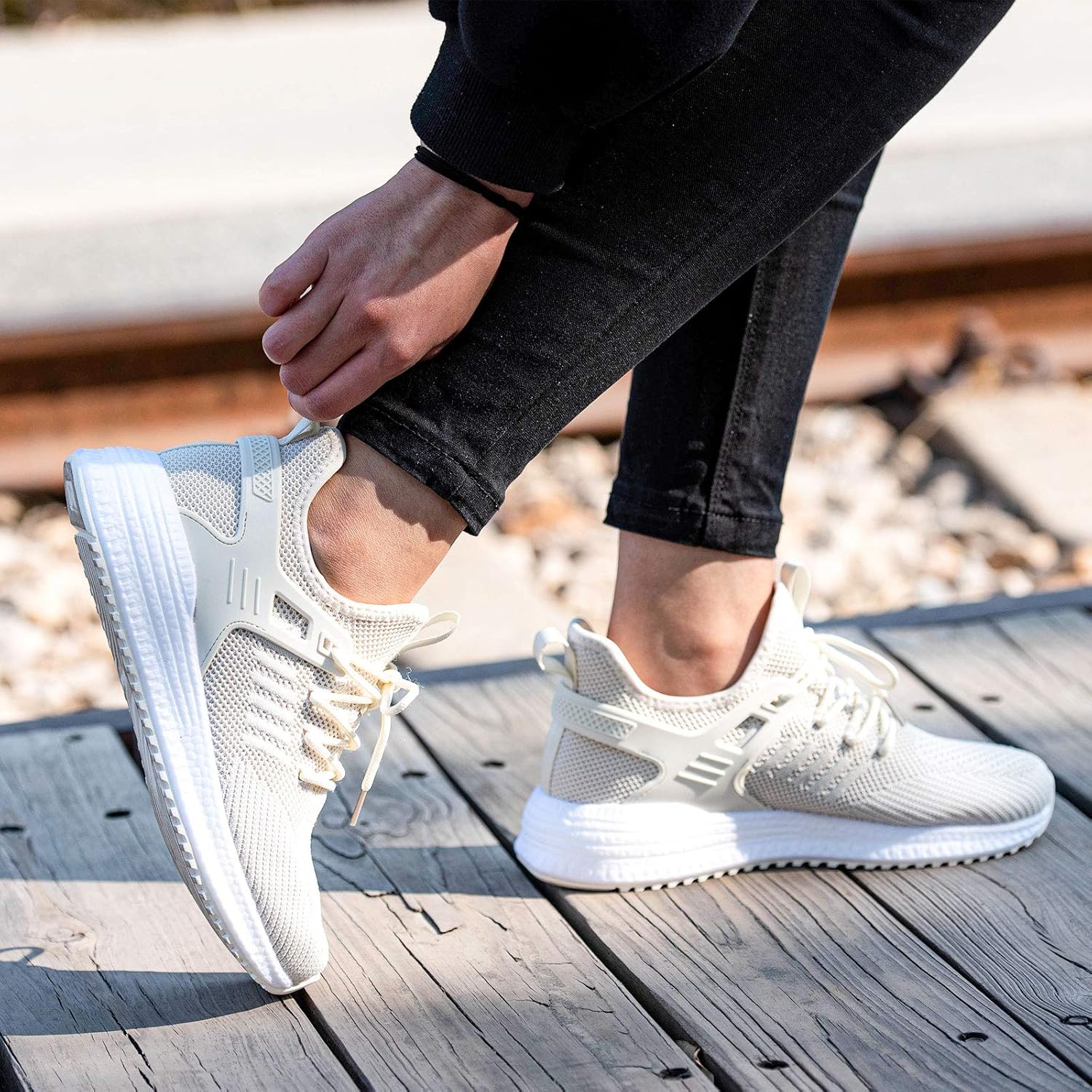 SDolphin Walking Running Shoes for Women - Lightweight Tennis Sneakers Gym Athletic Workout Fashion Nurse Memory Foam Non Slip on Nursing Walk Fashion Womans Shoes(Beige)