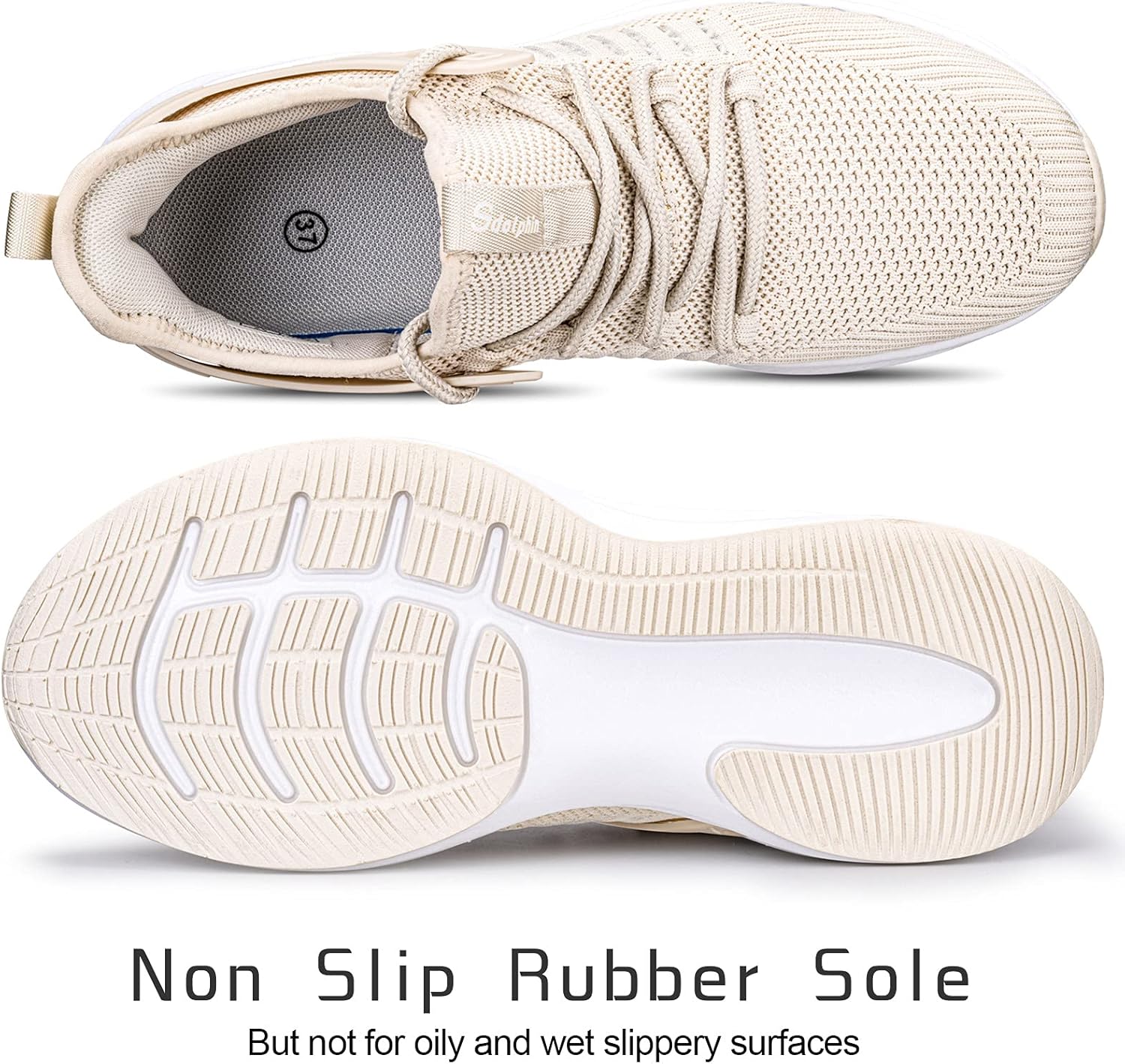 SDolphin Walking Running Shoes for Women  Lightweight Tennis Sneakers Gym Athletic Workout Fashion Nurse Memory Foam Non Slip on Nursing Walk Fashion Womans ShoesNew Beige
