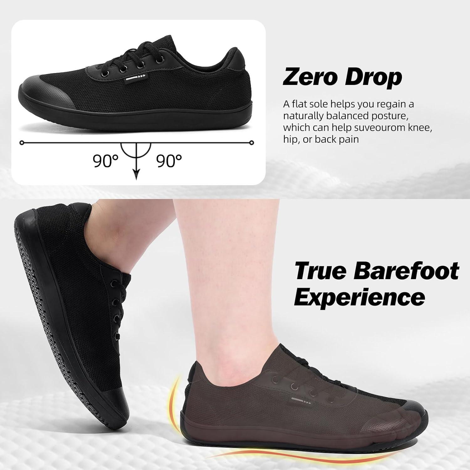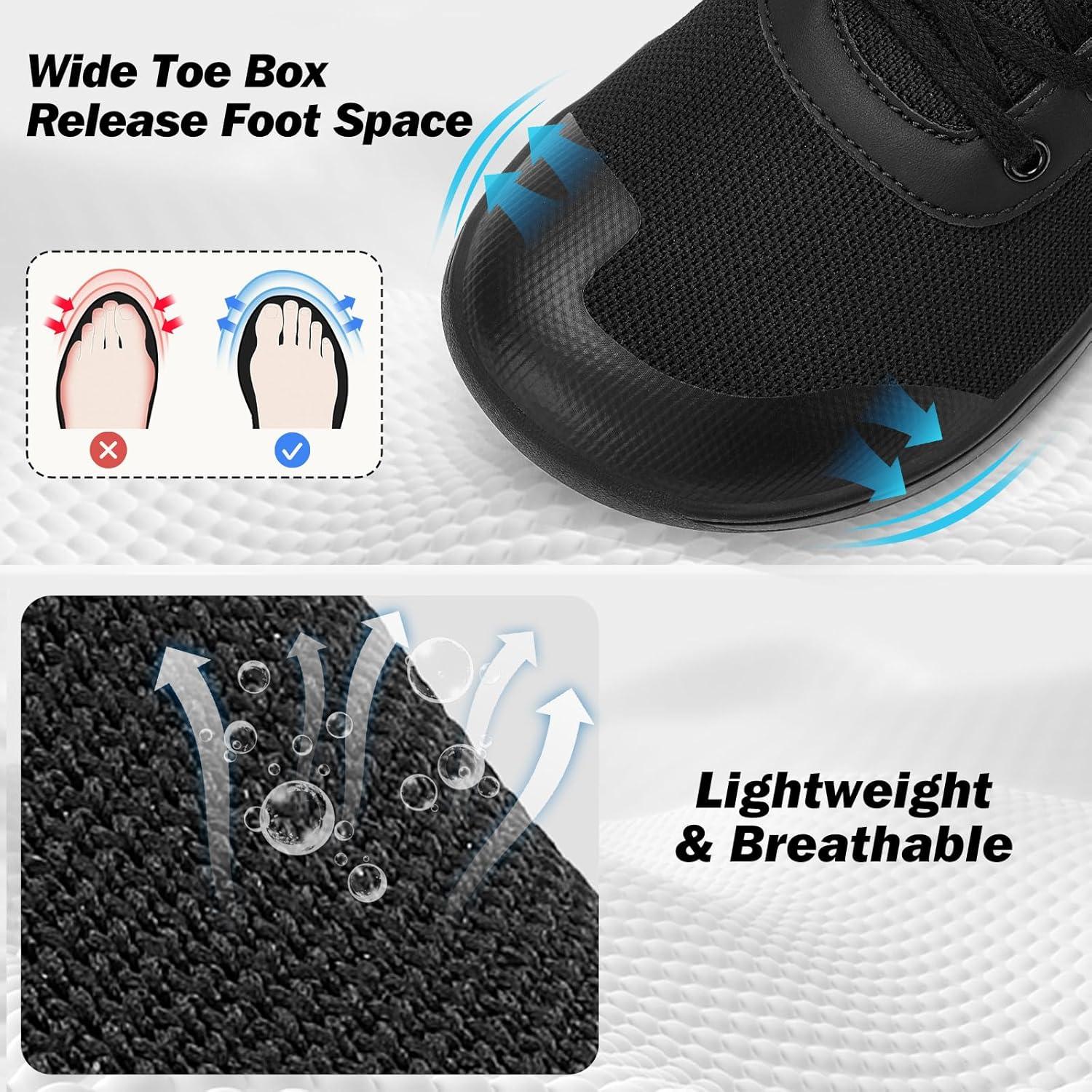 Wide Toe Box Shoes for Women – Minimalist Barefoot Shoes Zero Drop Casual Comfortable Athletic Walking Wide Width Fashion Sneakers for Swelling Bunion Plantar Fasciitis Foot(All Black)